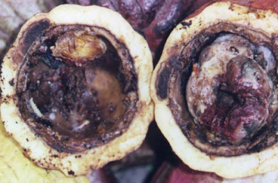 No hay que cosechar mazorcas sobremaduras porque originan una fermentación deficiente y se corre el riesgo de podredumbre y germinación de las semillas, esto último permite la penetración de hongos e insectos al interior del grano, resultando un cacao con características de inferior calidad.