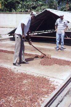 Inmediatamente al terminar la fermentación, el cacao debe someterse al secado. Esto se hace porque si se deja más tiempo en los cajones puede ocurrir una sobre fermentación que predispone los granos al ataque de insectos y a enmohecerse; además de tomar un olor desagradable.