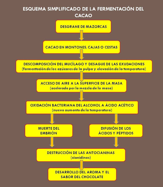 Todo lo señalado estará sujeto al tipo de cacao (origen genético), condiciones ambientales (climáticas), magnitud de la masa a fermentar y del método de fermentación empleado.