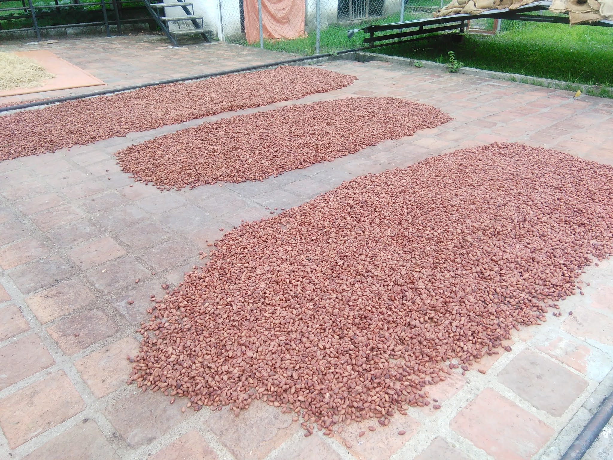 EL SECADO DEL CACAO tiene por objetivo eliminar la humedad y el ácido acético formado en el proceso de fermentación. Al final de la fermentación el contenido de humedad de los granos de cacao está alrededor del 55 %. Para ser almacenados con seguridad debe reducirse a límites del 7 – 7.5%. El proceso de secado no constituye una simple reducción de humedad sino que los cambios químicos continúan mientras el contenido de humedad desciende, este proceso no debe ser muy rápido, al contrario debe ser lento para volatizar los ácidos. Se deben extender las almendras de cacao fermentadas sobre el patio de secado en capas no mayores de 3 cm. de espesor.