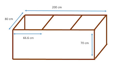 Si tenemos en cuenta los tres compartimientos en que tradicionalmente se divide una batería de cajones lineal tenemos que cada compartimiento tiene 80x70x66,6 cm con una capacidad cada uno para fermentar 125 Kg de cacao seco que serían aproximadamente 375 kg de cacao fresco o en baba.