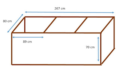 1.5 m3 / 0,80 m x 0,70 m = 2,67 m