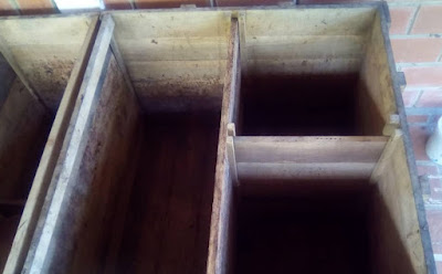 | Con una rejilla de madera en el fondo, de tablas de 5 a 8 cm de ancho, separadas unos 3 mm o agujeros de ½ cm de diámetro para facilitar el drenaje |