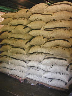El cacao en grano ya beneficiado, se coloca en sacos de 61 Kg, luego son llevados al almacén, aunque también pueden almacenarse a granel.