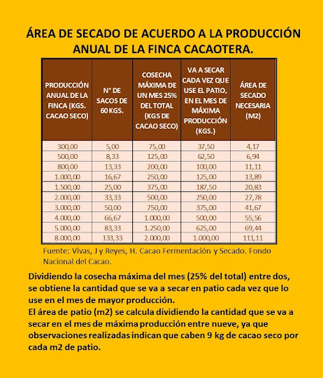 Es de mucha ayuda para el productor para calcular su área de fermentación y secado